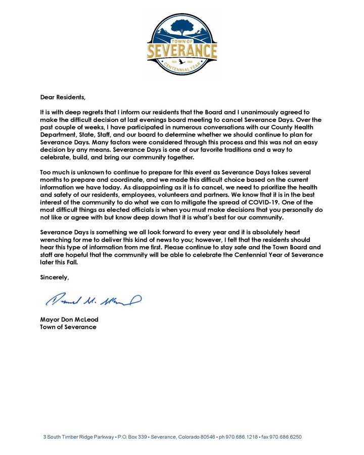 Town Of Severance Facebook